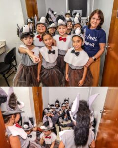 O elenco, formado por mais de 100 alunos, do Infantil 2 ao 3º ano do Ensino Médio, deu um verdadeiro show de talento, expressão e entusiasmo. Cada gesto, cada canção e cada sorriso transformaram o palco em um espetáculo de cores, ritmo e emoção.